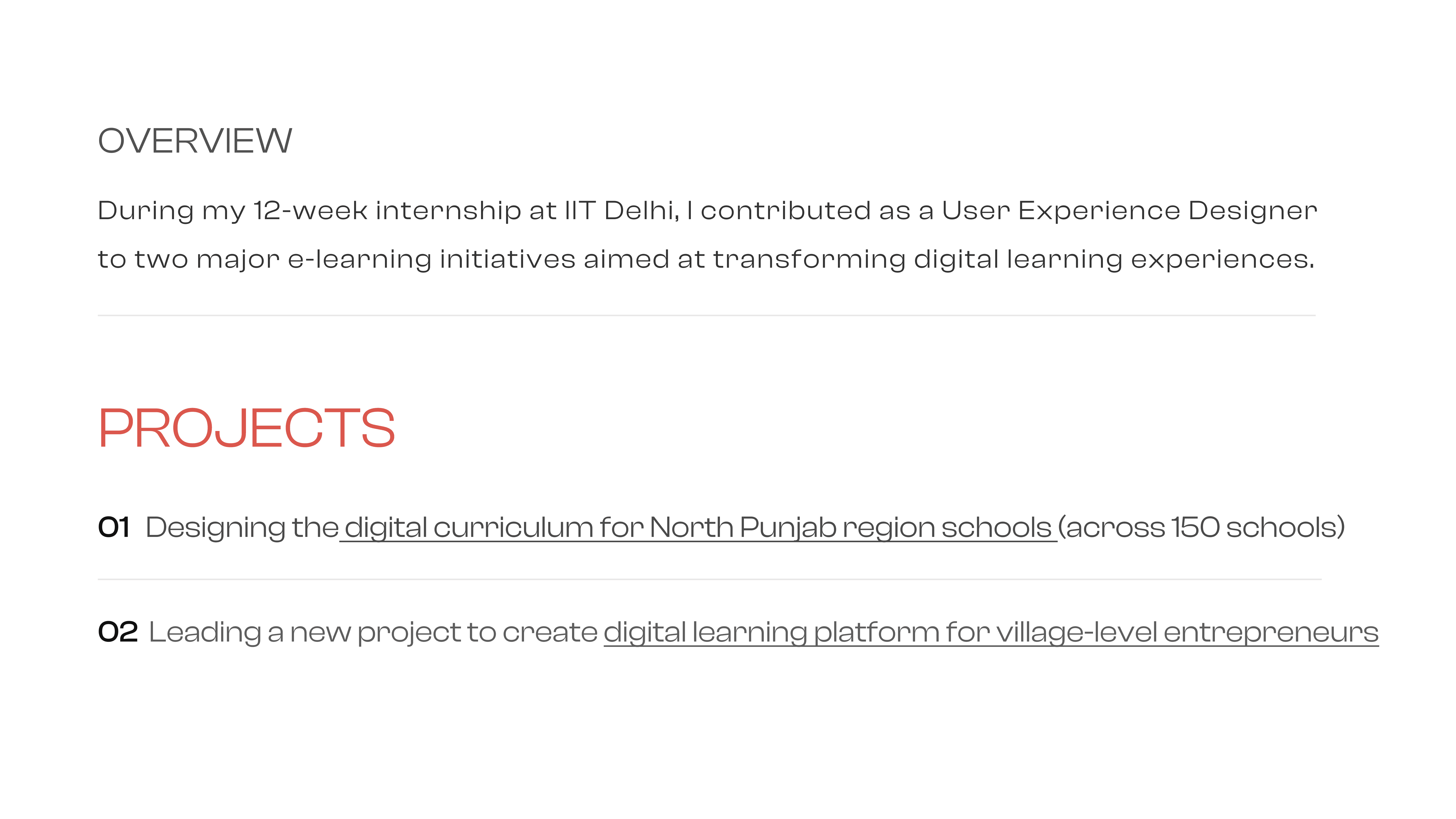 During my 12-week internship at IIT Delhi, I contributed as a User Experience Designer to two major e-learning initiatives aimed at transforming digital learning experiences.